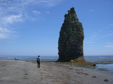 写真の尖った岩は、国後島にあるロウソク岩(ロシア名:悪魔の指)で、観光地の一つだそうです。