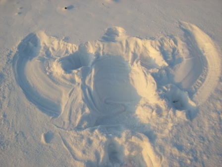 何も言わず、急に雪の上に仰向けになり、手をバタバタさせ始めたのです。